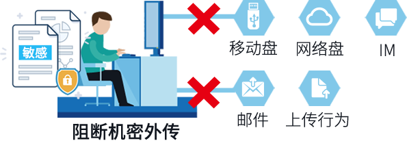 文档加密+文档操作管控+移动存储管控+设备管控+文档打印管控+即时通讯管控+邮件管控+网页浏览管控,有效保护敏感信息。